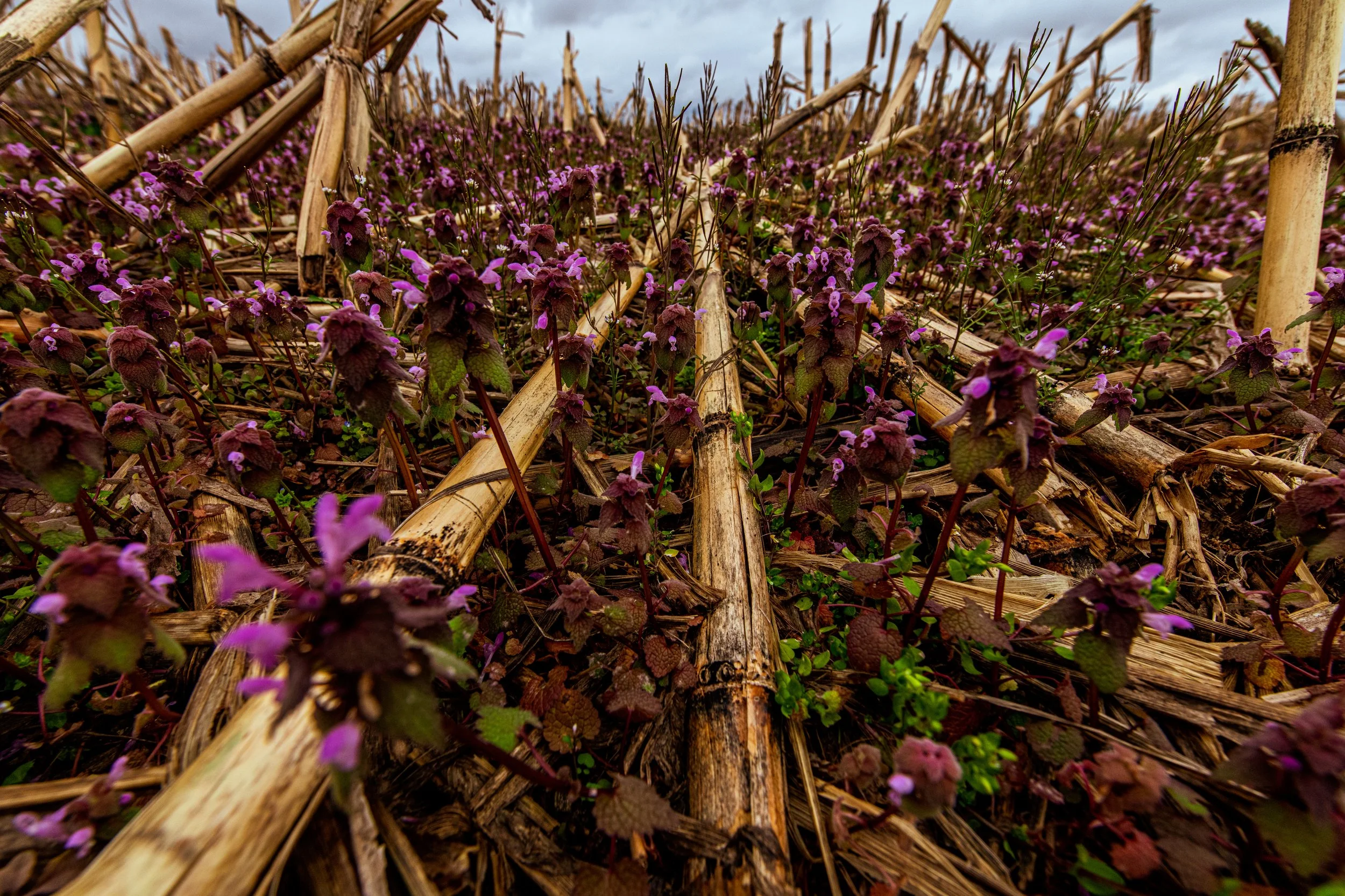 Over the past few years, I’ve stood at its edge in early spring, when the ground was soft and scattered with the remains of last year’s harvest. Last spring, I arrived to find a blanket of purple dead nettle covering the field. It was striking—how something with “dead” in its name could bring such vivid life back into the landscape. A reminder, perhaps, that renewal often shows up in unexpected ways.